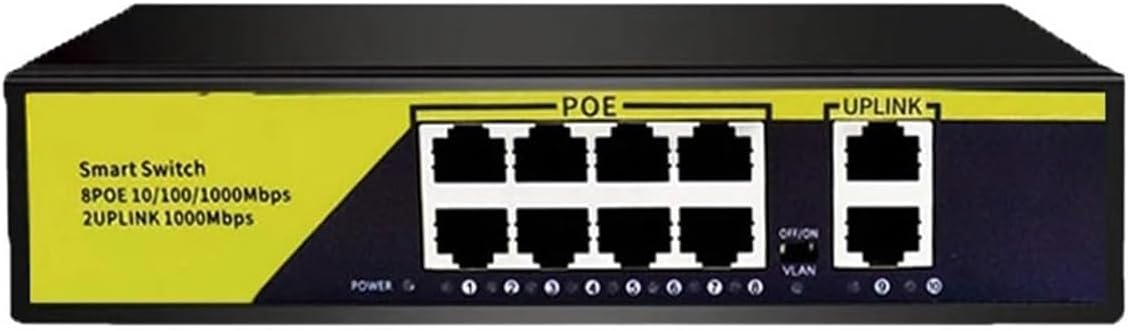 Hubs1.1 Supports the transmission of data signals through Cat5 or Super Cat5 Ethernet wireless access (AP) and network surveillance cameras, and also provides DC power for the equipment at the time.1.2 Simple to use, easy to operate, and play, lossless transmission security monitoring, network power supply wiring is not restricted by power lines, saving labor and costs1.3 Widely used, fully compatible, suitable for IPC monitoring and wireless AP equipment, suitable for shopping malls, communities, schools, hospitals, parks, hotels, small and medium-sized enterprises and other scenarios.1.4 Provide POE high-speed data forwarding without packet loss. Provide power data port, UPLINK port and wide voltage input port.1.5 Adopting EXTEND network signal/POE network signal switching design, the network power signal can be extended to 250 meters.OFF: When the control key is adjusted to the OFF position, the POE switch is 100MPS and the transmission distance is 100 meters.ON: When the control key is adjusted to the ON position, the POE switch is 10MPS and the transmission distance is 250 meters.Specificationport:8-port POE 10/100/1000 Mbps2-port uplink 1000Mbps2-port SFP 1000Mbpsmaterial: metalBackplane broadband: 20 GbpsStandard: IEEE 802.3af/atPower output: DC 52V 2.3A 120WPower input: AC/IN 110~240VCommunication mode: full duplexpacking list1* POE Gigabit switch1* Power cord (we will add the that matches your country)1* Quick installation guide