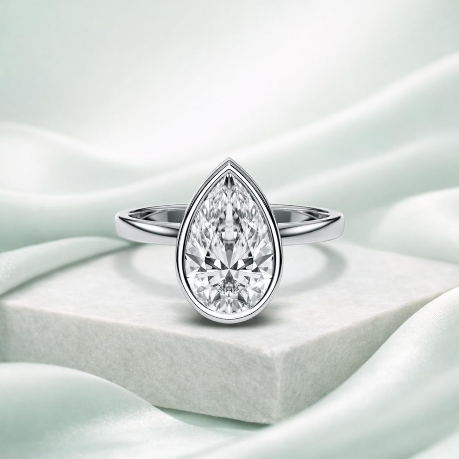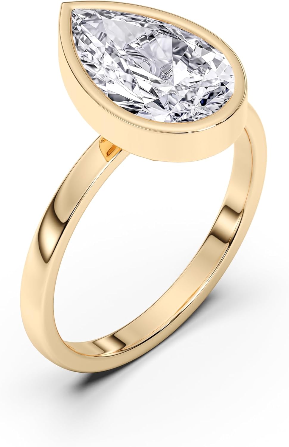 * Model Number: DJR-19402-Pear* Diamond DetailsType: Lab Grown DiamondColor: FGClarity: VSShape: Pear Cut DiamondTotal Diamond Weight:2.0 Carat to 4 CaratNumber Of Diamond: 1Creation Method: Lab Created* Metal DetailsMetal: Rose Gold / Yellow Gold / White GoldMetal Stamp: 10K / 14K / 18K* Other DetailsRing Type: Solitaire RingFinish: High PolishRing Size: 5 to 10.5Setting Type: Bezel Setting