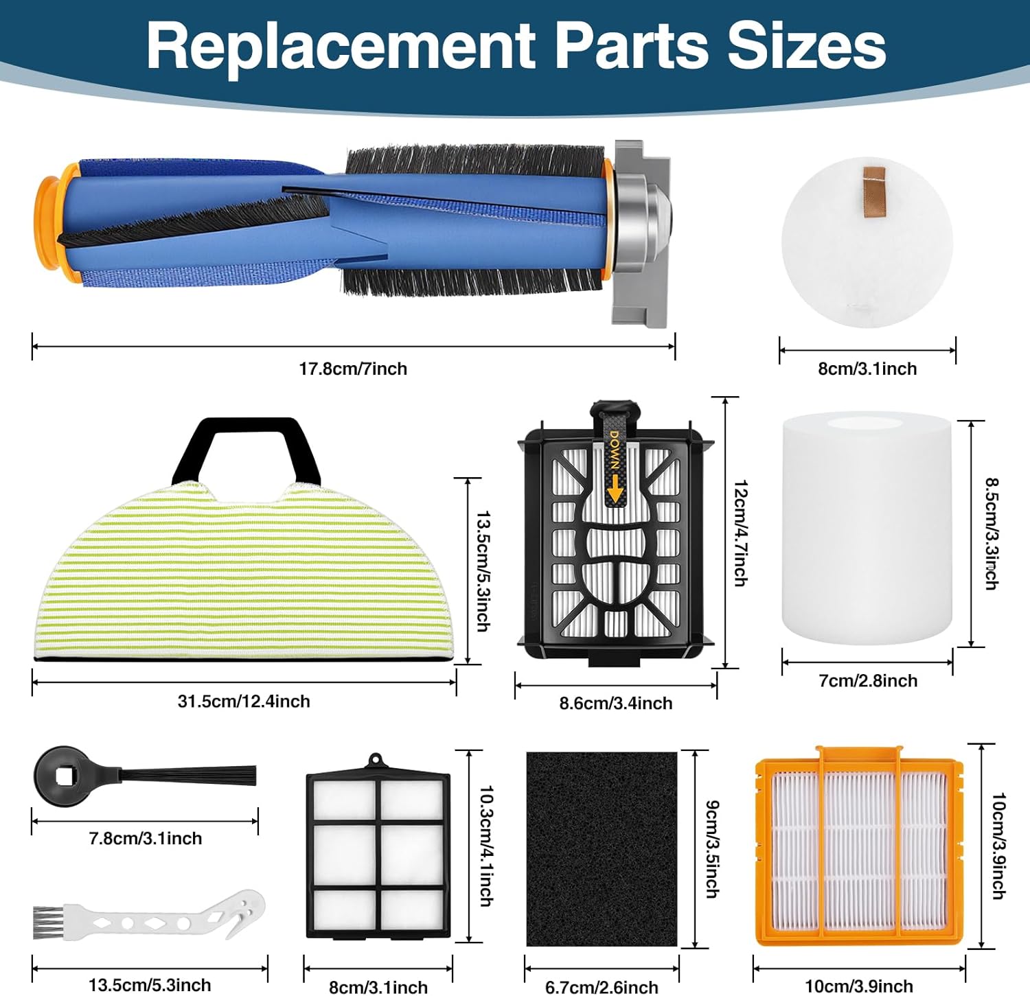 Product description 22 Pack Replacement Parts for Shark UR2650WS & AV2613WA Matrix Plus 2-in-1 Robot Vacuum, Accessories KIt with Main Brush, Filters, Pre-Filter, Felt-Filter, Pre-Motor Foam Filters, Mop Pad, Side Brushes, Cleaning Brush Compatible Models: 22PCS accessories parts for Shark UR2650WS Matrix Plus 2-in-1 Robot Vacuum Roller Brush: The main brush digs deep into carpets to thoroughly remove dirt, pet hair and other residue from hard surfaces. Side brush reaches deep into corners and edges to remove dust High Efficiency Filtration: HEPA filter set (with replacement filter cotton) is made of high-quality materials and captures 99.97% of dust, dirt, hair and other fine particles Side Brush: No more worrying about dust and debris in the corners, quickly sweeping away Reuse: The replacement parts set can be rinsed with water, just rinse with cold water and dry completely for a few hours before reinstalling Package Contains: 1 Main Brush 4 Filters 1 Pre Filter 1 Black Filter 1 Filtre Coton 2 Pre-Motor Foam Filter & Felt Filter 3 Mop Pad 8 Side Brush 1 Cleaning Brush Note: 1.Light reflection and different displays may cause the color of the item in the picture a little different from the real thing. 2.The measurement allowed error is +/- 1-3cm. Manufacturer Contact Information 1