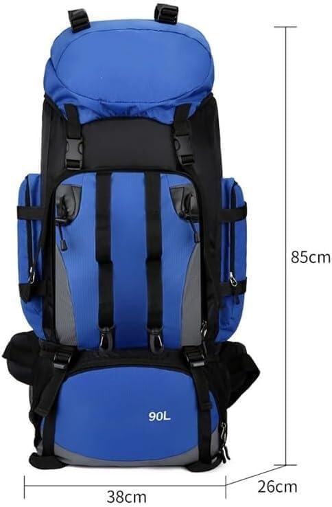 Material: nylonCapacity: 90LSize: 38 x 26 x 85cm(L*W*H)Made up of large capacity main pocket side pocket front pocket protective pocket bottom pocket waist pocket providing enough room for your trip.Adjust straps: Well-padded shoulder straps and a waist belt designed with the adjustable straps you can adjust the straps according to your needs. Occasion: Climbing Trekking Travel Skiing SportPackage List:1 * Outdoor BackpackThe dimensions are all manually measured which inevitably leads to errors. The data is for referencm.Please understand the color brightness difference caused by the monitor and refer to the actual product.Please contact us promptly if you have any questions about the product, and we will reply to you within 24 hours.