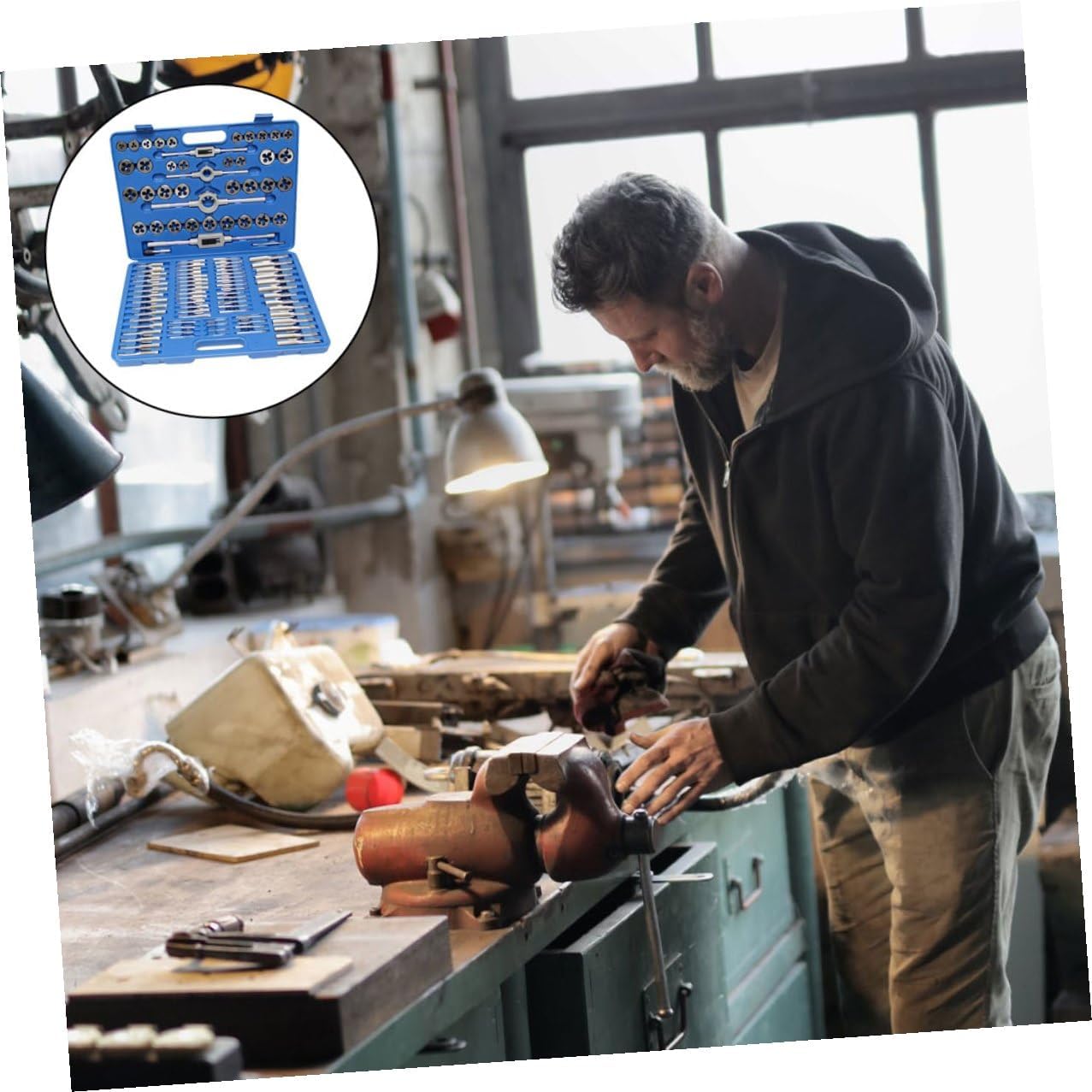 Package List 1 x set of 110pcs tap and die tools with carrying case Features -Note: This set comes with carrying case tap and die kit. -Color: Blue. -Material: bearing steel. -Size: About 43.20X32.40X5.70cm/16.98X12.73X2.24inch. -Product Info:Tapping tooth tool set -Made of bearing steel material with high accurate process provide and high precision. -Storage box helps you organize these tools well and make them portable for you to carry metric thread taps. -Suitable for manual processing, hand tapping operation, home, car maintenance, machinery, workshop, etc. -Adopted of material, it is practical and durable. -Easy to operate for your convenience, tool for you.Goods InformationMulti-purpose Tap Die Kit This set of practical tap and die tools, made of material, is practical and durable for long time use.tap die kit It includes essential accessories that you need for hand tapping operation.metric tap Suitable for home, car maintenance, workshop, etc