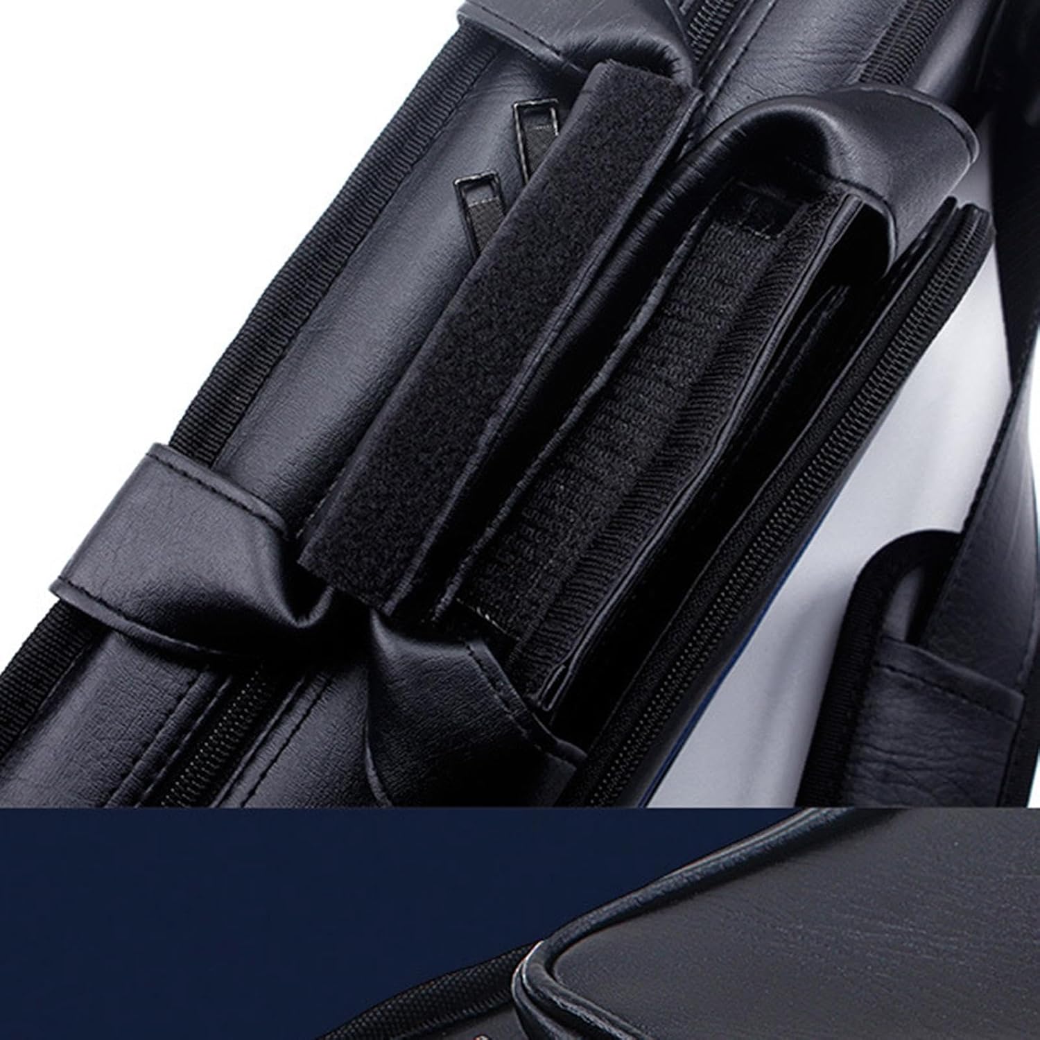Description: - 【Material and Size】: This American Nine Ball Billiard cue case is crafted from premium PU leather. The 1/2 Club Bag measures about 85 cmx12 cmx16 cm/33.46 inchx4.72 inchx6.30 inch - 【Spacious 9 Hole Design】: Featuring a generous capacity with nine holes (four for butts and five for shafts), this pool cue case allows you to organize your cues effortlessly. The interior prevents scratches and extends the life of your cues - 【Multiple Storage Options】: The pool cue bag is equipped with a zippered mesh pocket and small accessory bag for all your billiard essentials. The adjustable shoulder strap (70 cm-88 cm/27.56 inch-34.65 inch) ensures comfort for users of different body types - 【Easy Transportation & Store】: The billiard cues bag with smooth zipper, portable handle, and shoulder strap for convenient carry. Portable pool cue stick storage carrying bag - 【Practical Gift】: The pool cue case protects cues from bumps and scratches and prolongs the service life of the club. A great accessory for the billiard cue, and a good gift for billiard lovers, andSpecification: - Material: PU LeatherSize Chart:85cmx12cmx16cm/33.46inchx4.72inchx6.30inchPackage Includes:1 Billiard Cue CaseNote:Please allow slightly errors 1-2cm/0.39-0.79inch differences due to manual measurement.