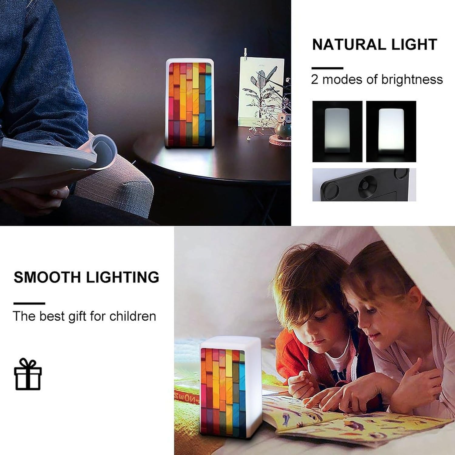 With a strong, impact-resistant plastic construction, this Colorful Board printed small bedside table is durable enough to withstand accidental knocks and splashes, making it an ideal lighting companion for bathrooms, kitchens and more. The carefully designed rounded edges ensure safety and fit in any homeThis cordless lamp is ultra-portable, meaning it won't take up much space on your desk or bedside table. And it's battery-powered so you can get light wherever you need it - in the bathroom, hallway, or even outdoors (note: not rechargeable)It easily adjusts the brightness to suit any activity, so it's versatile! In the bedroom, it's a bedside lamp, where the soft light helps you fall asleep easily without the harsh light. In bars and lounges, it creates a warm and inviting atmosphereThis mini lamp combines classic style with modern functionality, making it an ideal gift for friends, family or colleagues. This thoughtful gift is sure to surprise them with a sense of style, practicality and convenience