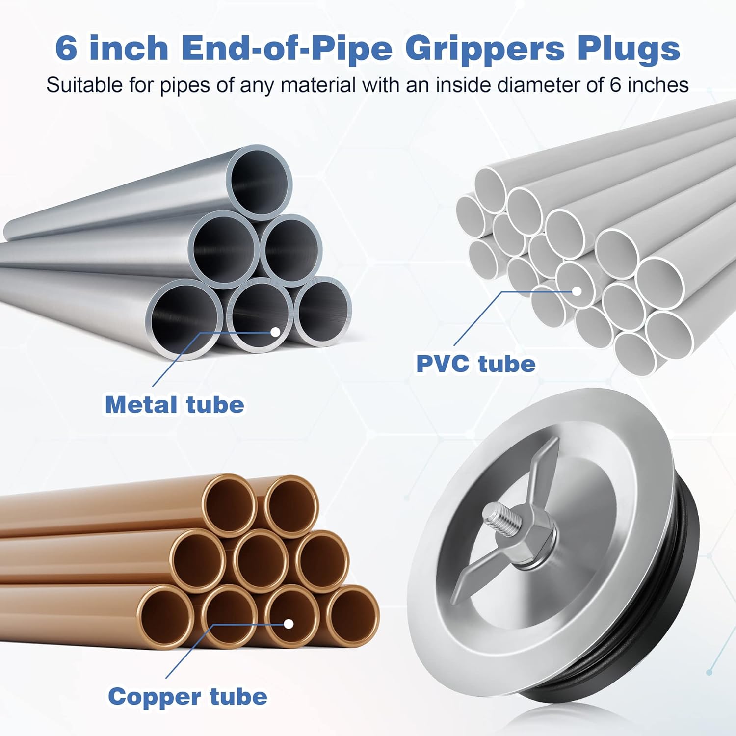 • Quality Materials: Dreyoo 6'' Sewer drain plugs are made of quality rubber and metal for maximum expandability, which ensures a tight seal; Stainless steel wing nuts, which are more durable, stable and firm; You can use these plugs for a long time