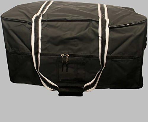 Bag is constructed of heavy-duty, pro-level tarpaulin for weather resistance and extreme durability. There are large inside mesh pockets at each end of the bag. It has two large grommets to provide necessary ventilation. The grab handles on either end are double layered and reinforced with rivets, ensuring their durability regardless of how much heavy equipment is packed inside. There is an identification pocket on the top of the bag for your convenience. The bag can be decorated by a cad cut vinyl or plastisol ink transfer at a max temperature of 275-290 degrees f, with the flexible application pad on a smaller platen of 11" x 15".
