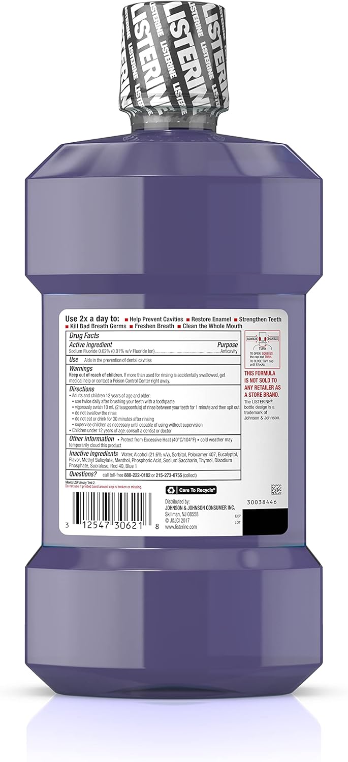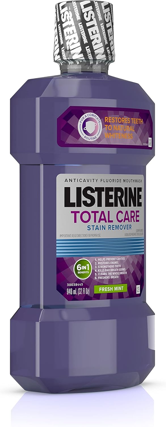 Give your mouth complete care with Listerine Total Care Stain REMOVER Whitening Fluoride Mouthwash for anticavity protection and fresh breath. Listerine Total Care Stain REMOVER provides the same six benefits in one as Listerine Total Care Anticavity Mouthwash, plus helps remove stains and restore teeth to natural whiteness. With up to 2.4x the fluoride uptake than Act mouthwash brand**, this fluoride formula helps prevent cavities, restores enamel, and strengthens your teeth, helping make them 50 percent stronger than just brushing alone*. It freshens breath, kills germs that cause bad breath, and cleans your whole mouth. With approximately 7 weeks of supply, this 32-fl. oz bottle in Fresh Mint flavor.*In laboratory studies.**In laboratory tests compared to Act Anticavity Kids Fluoride Rinse, Act Total Care Anticavity Fluoride Rinse, Act Total Care Anticavity Mouthwash, Act Restoring Mouthwash.Third party trademarks used herein are trademarks of their respective owners.
