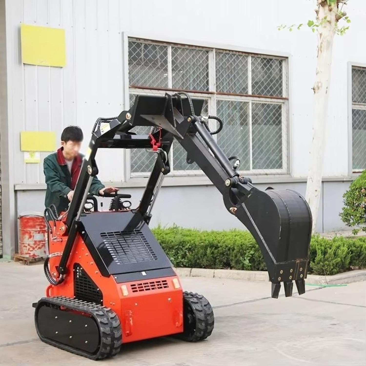 Color:Blue, black, green, yellow, white, customizable Place of origin: China Type:Skid steer loader Moving type:Crawler loader Dimension(long * breadth * high):1910*920*1420mm Warranty:1 year Machine weight:1500 kg Bucket capacity:500kg Video outgoing-inspection:Provided Core components:Engine, pump Product name:Mini skid steer loader Maximum tipping angle of bucket:90° We can provide customized services.