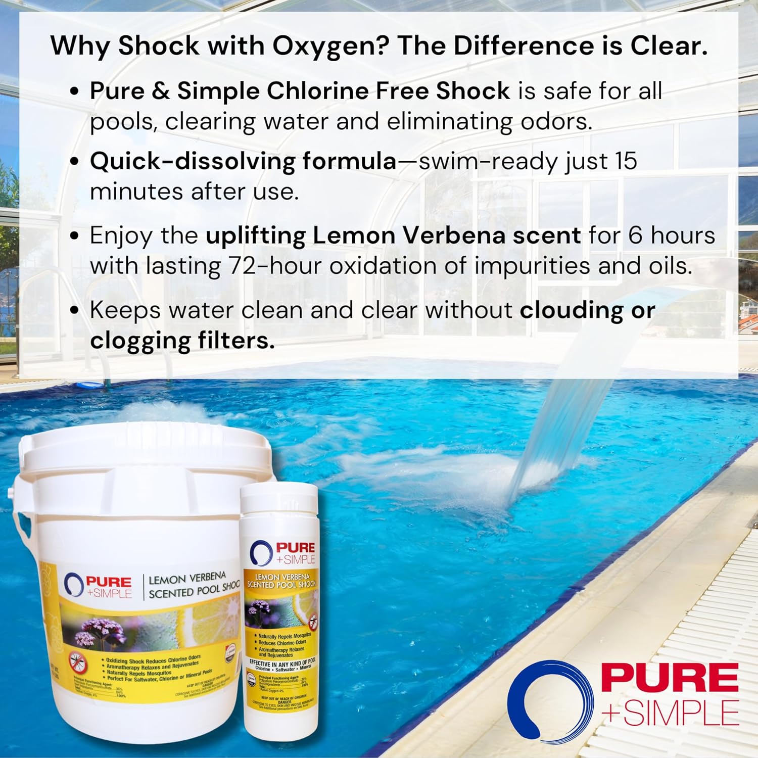 | Product Benefits | Maintains Clean Sanitized Water, Low-odor Sanitization, Kills Bacteria, Prevents Stains |