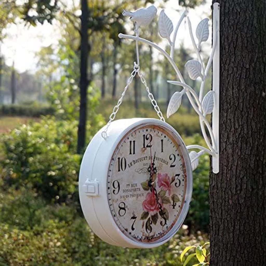 Specifications: Shell material: metal Movement: Silent Color: White Display type: pointer + number Appearance: Round Category: Wall Clock/Timer Battery: AA battery (not included) Process: sanding, welding, baking Application areas: living room, office, study, bedroom Our Vintage Wall Clock - Double Sided Wrought Iron Antique Wall Clock Wall Mount was inspired by the antique clocks hanging in railway stations. Easy to hang on the wall mount and secure. Perfect for living rooms, lobbies, porches and hallways.