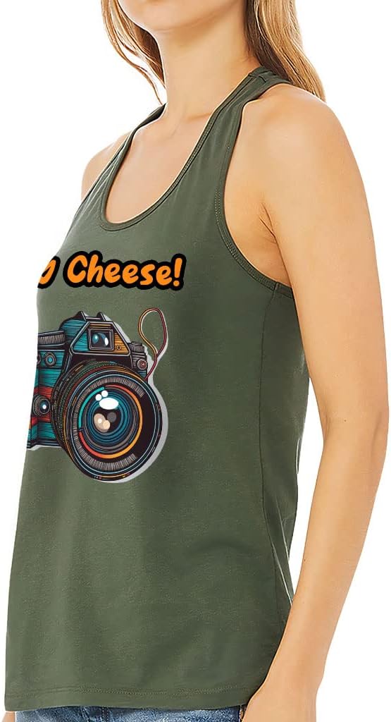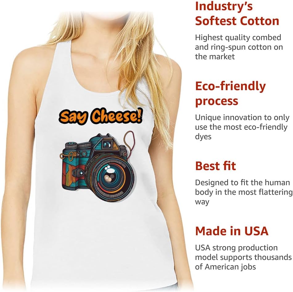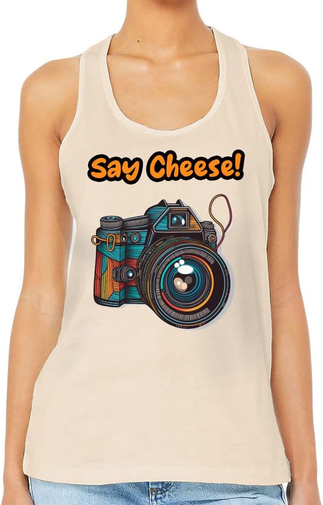 We are focused on creating affordable, high-quality, and long-lasting everyday clothing you can rely on. Each piece is put to the test to maintain the highest standards of quality and comfort. Say Cheese Women's Racerback Tank combines a striking design with lightweight and breathable fabric. This is what you need for sports or everyday wear. Treat yourself or your loved ones and get Camera Tank Top, you will definitely not regret this purchase.