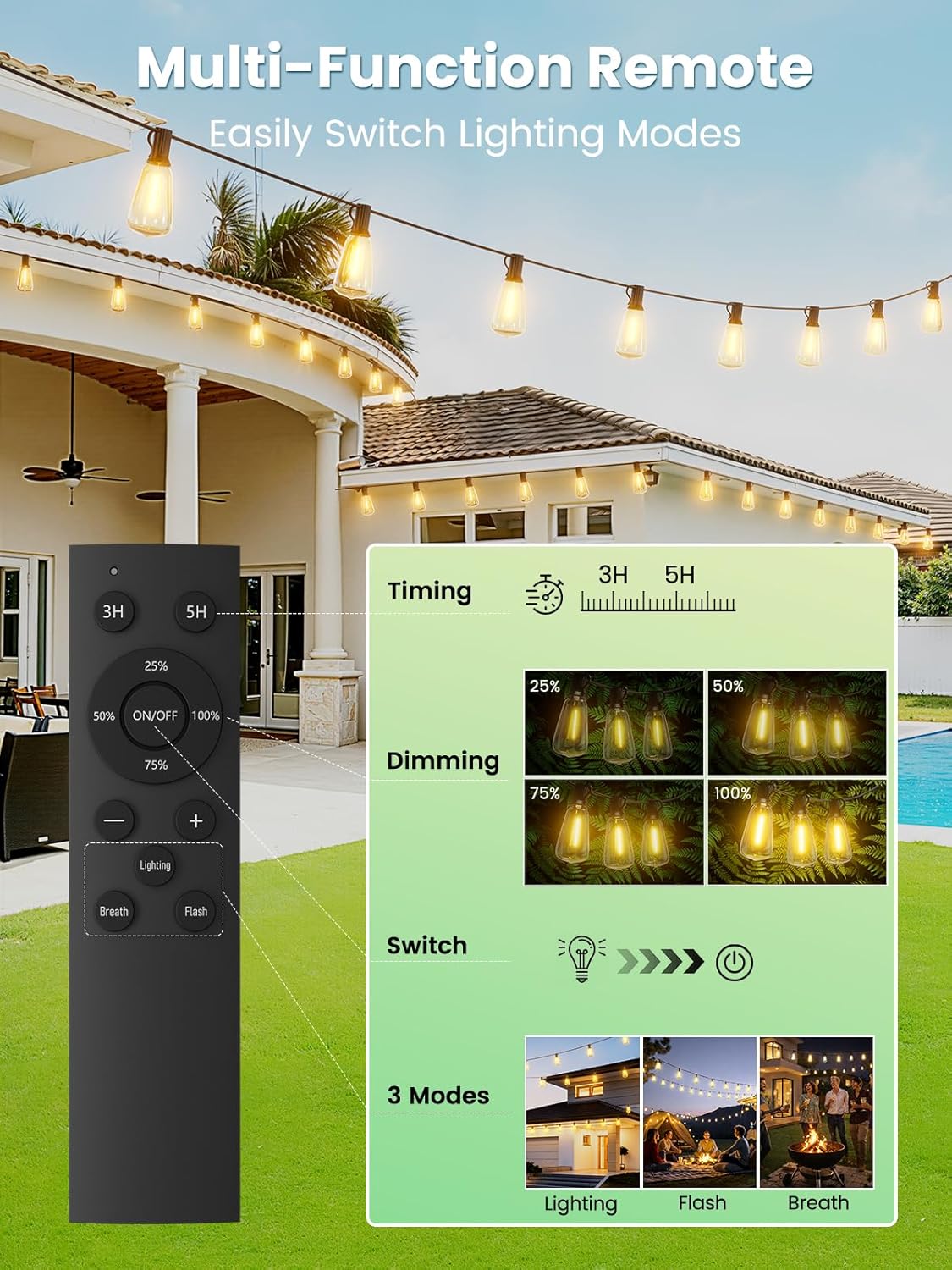 Svater G40 120FT Patio String Lights + 75FT ST38 Solar String Lights Outdoor with Remote