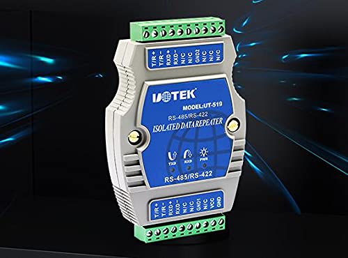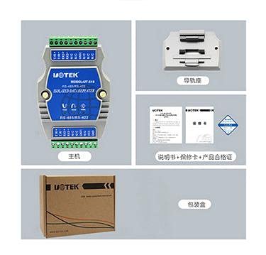 Product features: ·Extending the communication distance of 485 / 422 bus network and improving the network reliability ·Point to multipoint allows the connection of 128 422 or 485 interface devices ·The data communication rate reaches 300-512kbps ·With power indicator and flow indicator, it can indicate the fault There is a zero delay automatic transceiver in the converter ·\/O circuit automatically controls the direction of data flow without handshake signal (such as RTS, DTR, etc.) and jumper setting, realizing full duplex (RS-422) and half duplex (RS-485) mode conversion, plug and play. Using TVs transient voltage suppressor ·Protect the rear circuit components from damage due to transient high voltage impact. ·The protector can effectively suppress lighting and ESD, provide 600W lightning surge protection power for each line, as well as surge voltage and transient overvoltage caused by various reasons on the line, and has small inter electrode capacitance High speed transmission of RS-422 / RS-485 interface is ensured. Built in photoelectric isolator Isolation voltage up to 2500vrms 500VDC continuous DC / DC module Product information Product Name: RS-485 / RS-422 repeater Product model: ut-519 Transmission rate: 300bps-512kbps Working mode: asynchronous half duplex or asynchronous full duplex Transmission medium: twisted pair or shielded wire Overall dimension: 120mmx80mmx25mm Use environment: - 40 ℃ to 85 ℃, relative humidity 5% to 95% Transmission distance: 0-5, 000m (512kbps-9600bps)