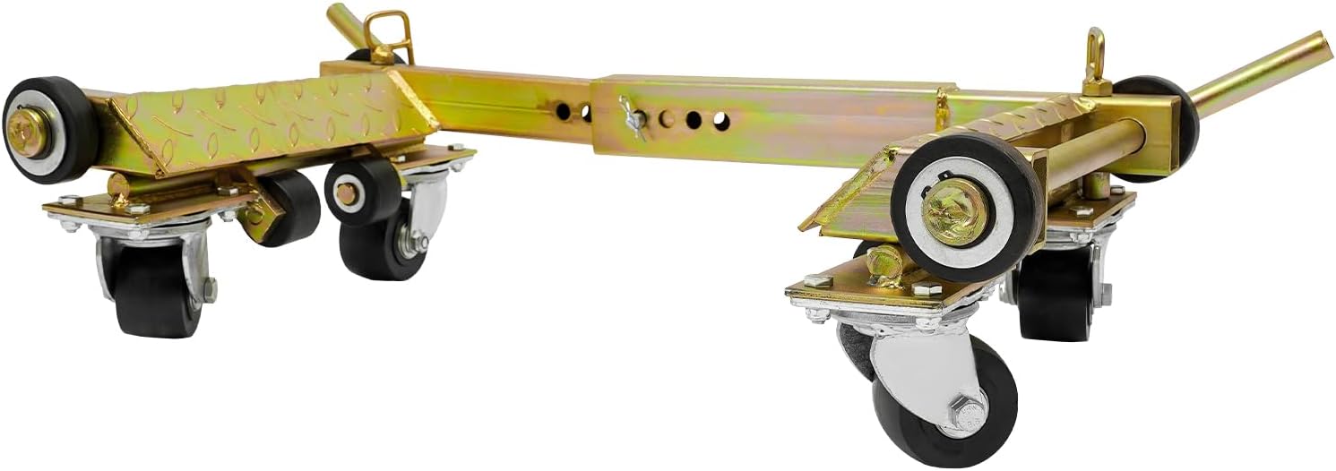 SpecificationsColor: Shown as PicturesMaterial: Steel, NylonProcess: GalvanizedMount Type: Floor StandingAssembly Required: YesLoad Bearing Capacity: 1T/2204.62lbsProduct Overall Size: 62*39.5*20cm/24.4*15.55*7.87inAdjustable Inner Length: 35-42cm/13.77-16.53inSupport Frame Length: 30cm/11.81inPackage Size: 62*52*13cm/24.4*20.47*5.12inGross Weight: 22kg/48.5lbsNet Weight: 21kg/46.3lbsPackage Included1* Wheel Dolly1* English Manual