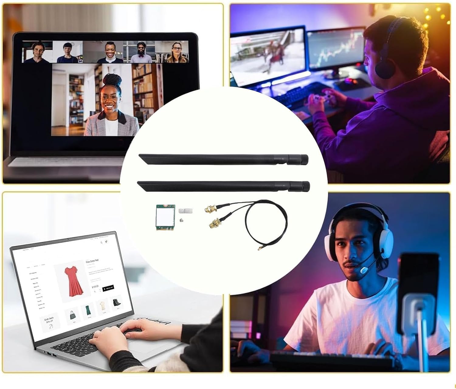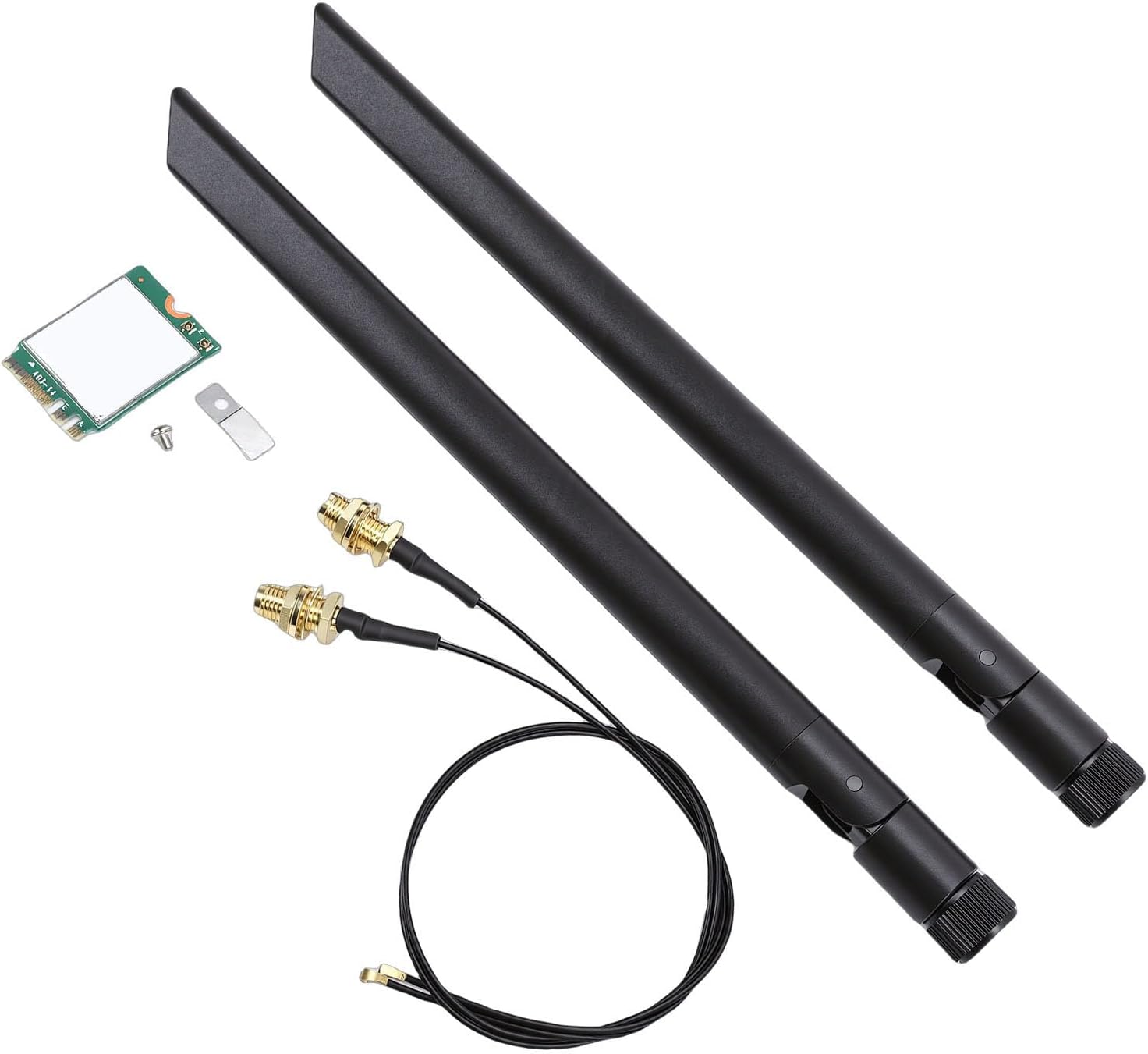 [Wide Compatibility] - Requires an m.2 pcie key a+e wifi slot, supporting and platforms, making it suitable for most laptops and desktops with ngff (m.2) 2230 slots. [Advanced Bluetooth Technology] - With bluetooth 5.3 and dual 8db antennas, enjoy enhanced connectivity on 10, 11, and systems. [Versatile Usage] - This card functions as both a laptop and desktop adapter, supporting the wifi 6e 6ghz band for faster speeds in various setups. [High speed Wifi 6e Technology] - Experience ultra fast wireless internet with triple band connectivity of 2.4g, 5g, and 6gghz, ideal for seamless online activities. [Enhanced Network Performance] - Compatible with mesh and upcoming wifi 7 routers, this card boosts network stability and speed for a reliable online experience. Spec: Item Type: WiFi Wireless Card Material: PCB Interface: M.2 Model: AX1675X Network: WiFi 6E Bluetooth: Support 5.3 Frequency/Speed: 160MHz, 2.4G 5G 6GHz Triple Band Technology: Supports MU MIMO and 1024QAM Technology Antenna: Dual 8db Antenna Compatibility: Support for and Support for Platforms with Support for 10 11 64 Bit System or Support for Package List: 1 x WiFi Wireless Card 2 x Antennas 2 x Adapter Cables 1 x Screw 1 x Screw Pad How To Use: Out of the box