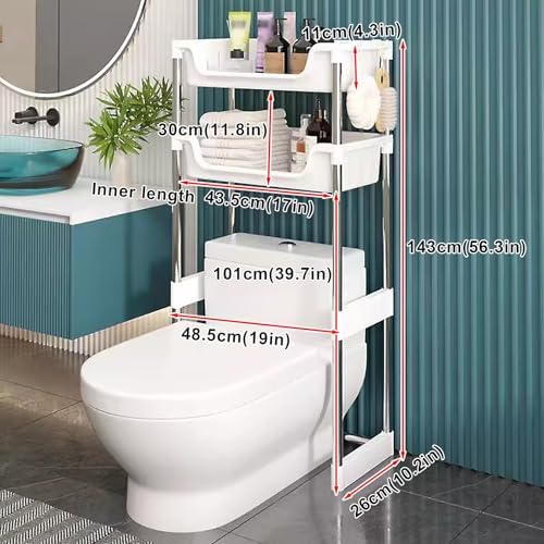 Transform your bathroom into an organized haven with our over-the-toilet organizer. This elegantly designed storage solution not only maximizes available space but also enhances your décor with its modern aesthetic. With ample room for toiletries, towels, and decorative accents, you can keep your essentials neatly arranged and easily accessible. Our over-the-toilet shelf features adjustable feet for stability on various floor types, ensuring a secure fit even on uneven surfaces. For added peace of mind, we've included strong adhesive securing clips to keep your shelf safely in place. With 10 convenient hooks integrated into the design, you’ll have additional hanging options for items like towels or brushes, making this organizer a versatile addition to your bathroom. Upgrade your bathroom with this stylish and functional over-the-toilet shelf that beautifully combines practicality and design. Whether you’re preparing for a relaxing bath or hosting guests, this organizer will help you maintain a clutter-free environment while showcasing your favorite decorative pieces. Product Specifications: - Material: Stainless steel pipe + plastic frame - Color: White - Size Options: - 48.5*26*112cm (19*10.2*44in) - 48.5*26*143cm (19*10.2*56.3in) - 48.5*26*173cm (19*10.2*68in) - Number of Layers: 1/2/3 shelves - Installation Method: Floor mounted, assembly required - Ideal for: Bathrooms, especially above the toilet Please measure your toilet dimensions before purchasing to ensure a proper fit. Note that manual measurements may have a slight variation of about 0.5-1cm.