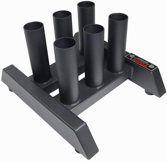 This weight bar stand is perfect for commercial settings and holds six 2” Olympic barbells vertically. This bar holder is made of commercial grade steel and the shape prevents tipping while loading and unloading the barbells. The small footprint frees up floor space and the attractive black finish compliments other equipment. This stand is a great alternative for fitness clubs that are not able to hang barbells on the wall and makes it easy for users to choose a bar. The double sided format allows for easy access from either side. Additional information Weight 22 lbs Dimensions 16 × 20 × 11 in Footprint x x in